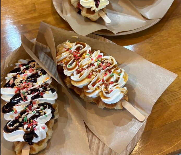 城下町プラザ近くにある、クロッフルとピタパンが人気のお店。クロワッサン生地をワッフルメーカーで焼いたクロッフルは、外はサクッと中はふんわりした食感が楽しめます。ピタパンは月ごとにフレーバーが変わるため、訪れるたびに違った味を楽しめるのも魅力。