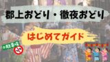 服装に厳密な決まりはなく、踊り方も見よう見まねで参加できます。ただし、徹夜おどりならではのマナーや、輪に入る際の注意点はあります。初めて参加する方向けに、服装・持ち物・踊り方の基本ルールは別記事で詳しくまとめています。