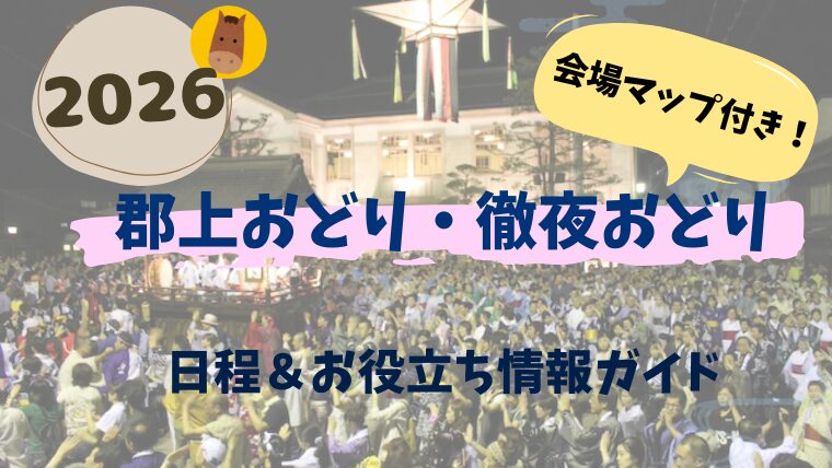 2026年の郡上おどり・徹夜おどりは、7月11日(土)から9月5日(土)まで開催され、徹夜おどりは8月13日(木)〜16日(日)の4日間行われます。本記事では、開催日程を一覧表と会場マップで整理し、初めて参加する方でも全体像がつかめるようまとめました。